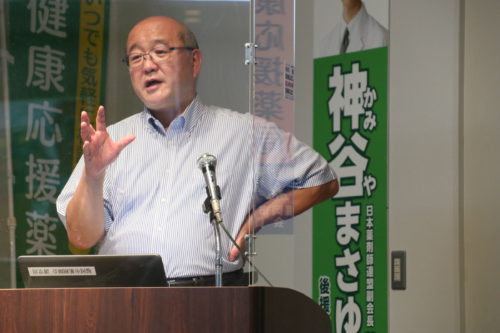 8月19日(金)福岡市薬剤師会館講堂にて、日本OTC医薬品協会 磯部総一郎理事長(前 日本薬剤師会専務理事)を講師にお招きし『これからの薬剤師職能を考える〜患者、国民のために生きる〜』という演題で研修会を行いました。コロナ禍でのハイブリッド開催ではありましたが、会場30名、WEB100名が参加をしました。