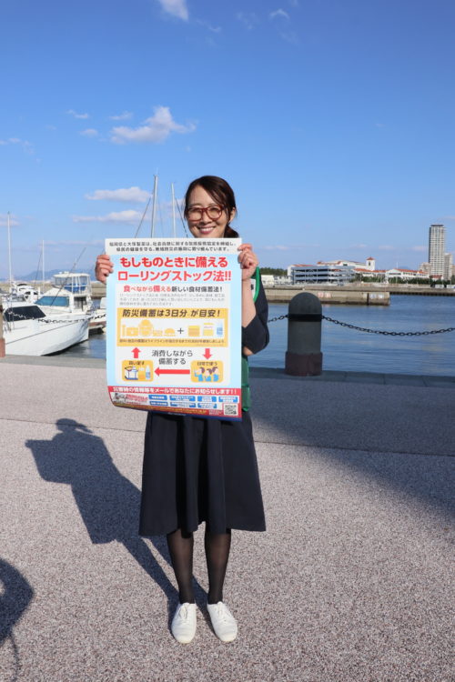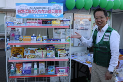 日常に取り入れたい防災備蓄について、実物を展示し見てもらいました。