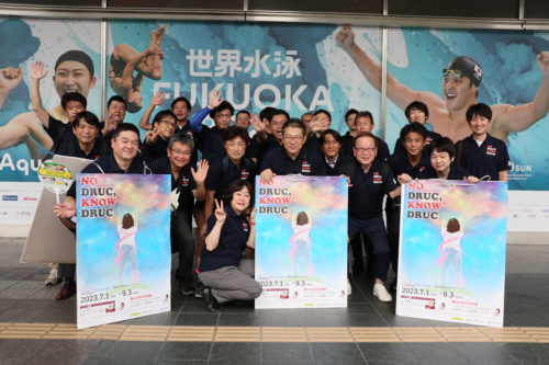 私たち福岡市薬剤師会も17時よりJR 博多駅博多口・賑わい交流空間(福岡市博多区博多駅中央街)にて、薬物乱用防止の呼びかけを行いました。