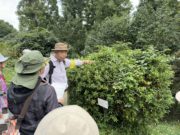 60名以上の参加者が6つの班にわかれて、44種の薬草を観察しました。