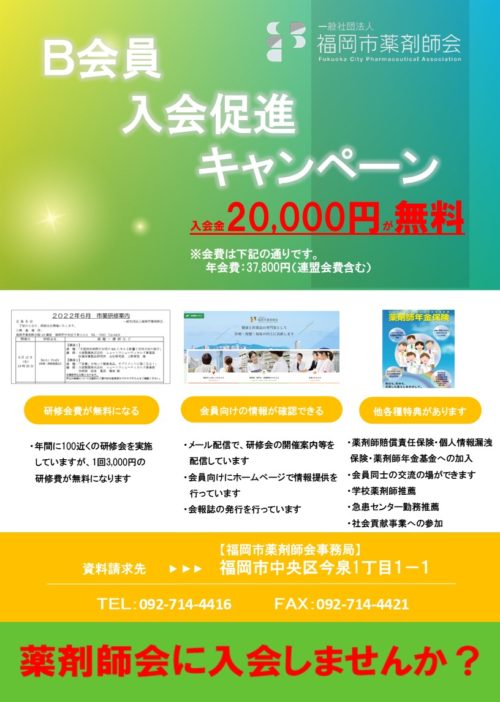 また、福岡市薬剤師会では、学生会員さんを募集しています。入会金・年会費は無料です。