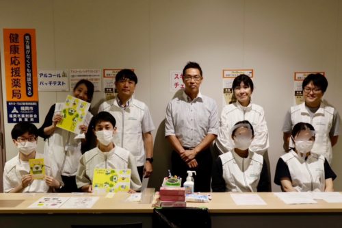 このイベントは、10月の「福岡市健康づくり月間」に合わせて開催されたもので、健康づくりに役立つさまざまなブースが出ていました。私たちは、お薬相談、美肌チェック、アルコールパッチテストなどを行いました。