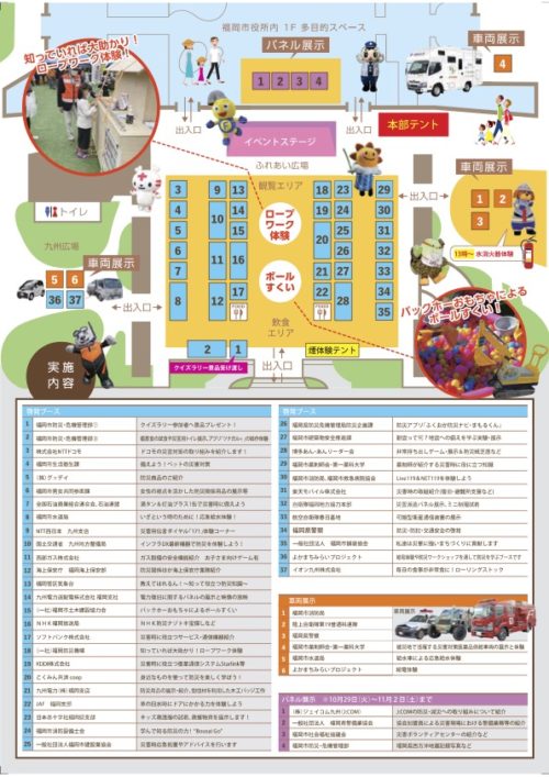 今回の福岡市防災フェアは、ステージイベントもあり、沢山のブース・車両が登場する楽しさ満載のイベントとなっています。是非、お誘いあわせの上、ご来場ください!