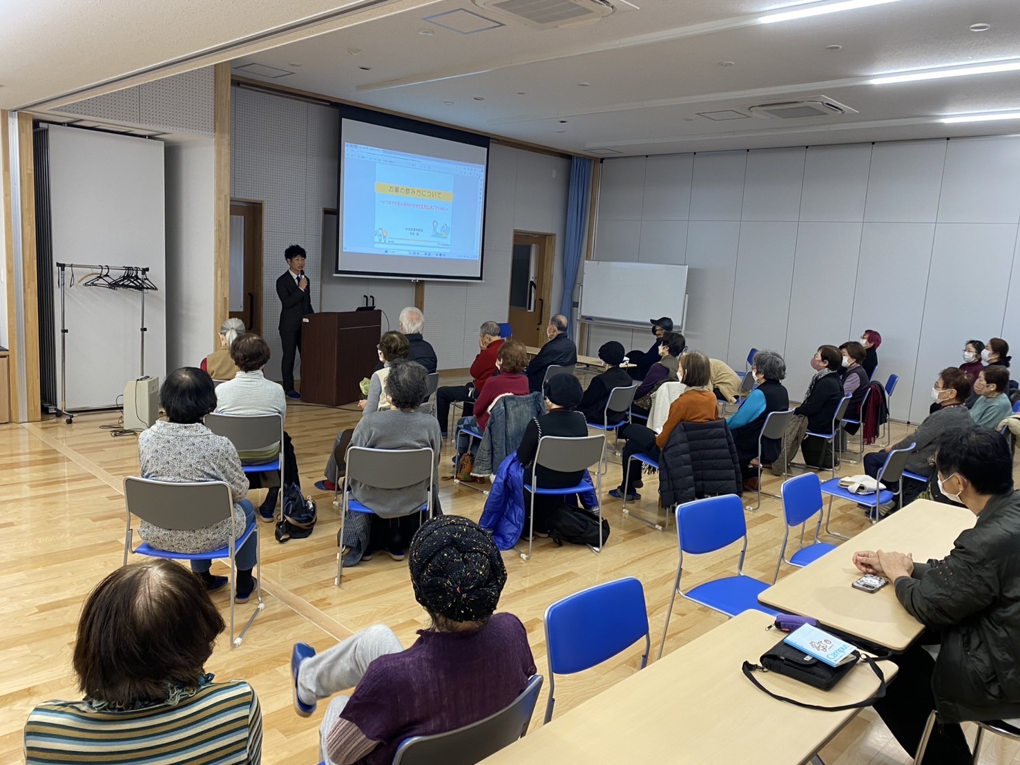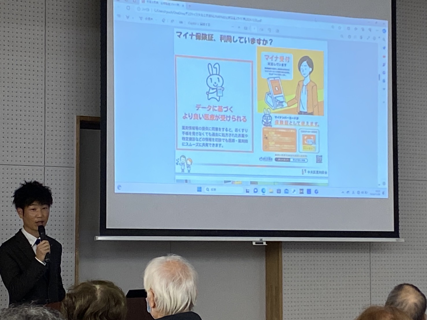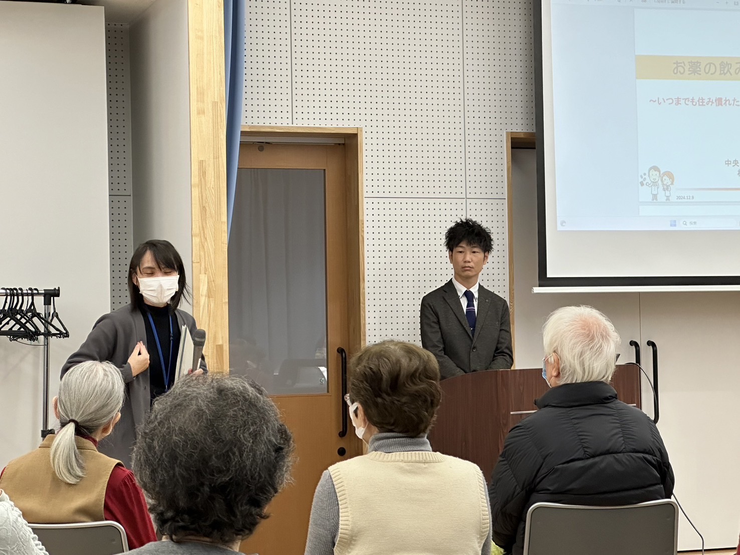 2024年12月21日 中央支部 【中央区】2024.12.9 大名校区出前講座 開催 2024.12.9(月) 9:30~12:00 大名公民館にて大名校区出前講座が開催されました。 お薬の飲み方について、林田理事が登壇され、 29名の方にご参加頂きました。