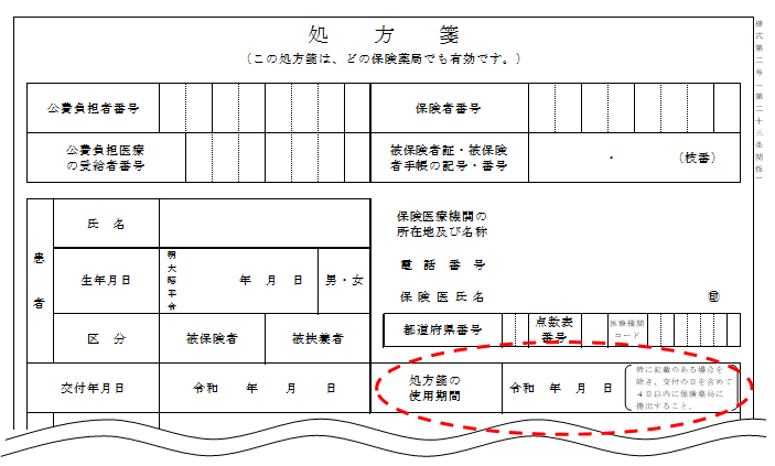 処方医が必要性を認め、処方箋に別途使用期限を記載した場合は、その日までが使用期限になります。