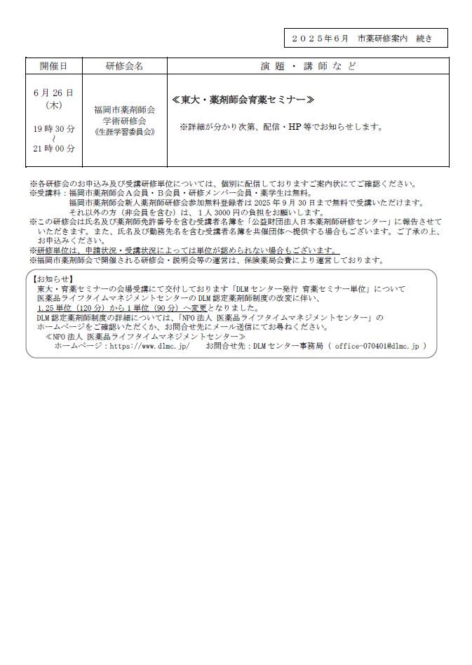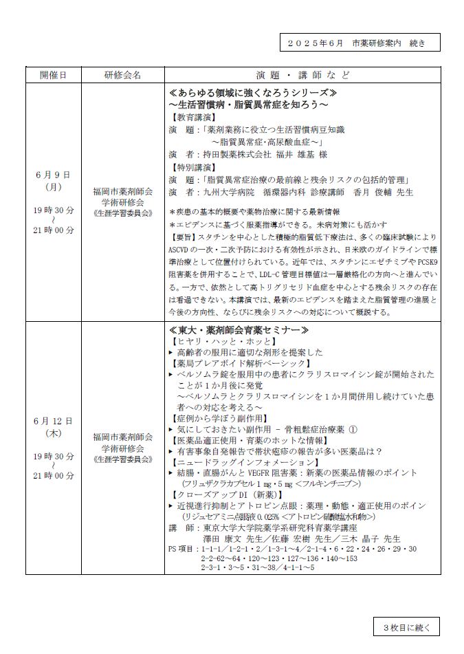 福岡市薬剤師会の会員(A会員・B会員・市薬研修メンバー)及び会場受講に限り事前申込みにて非会員の方の受講も可能といたします。