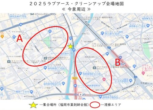 A班(今泉エリア)B班(薬院駅周辺エリア)に分かれて清掃を行いました。
