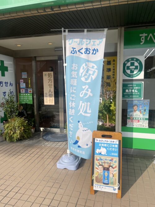 薬局で熱中症予防「クールシェアふくおか」に参加しています
