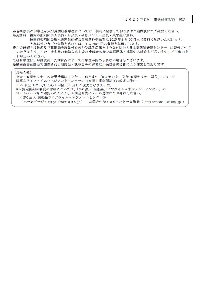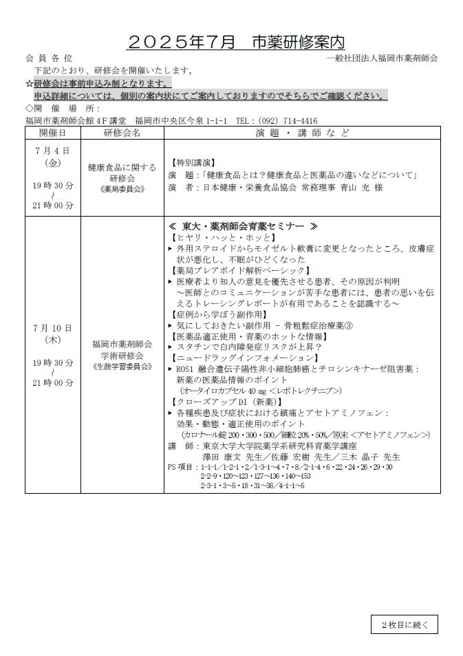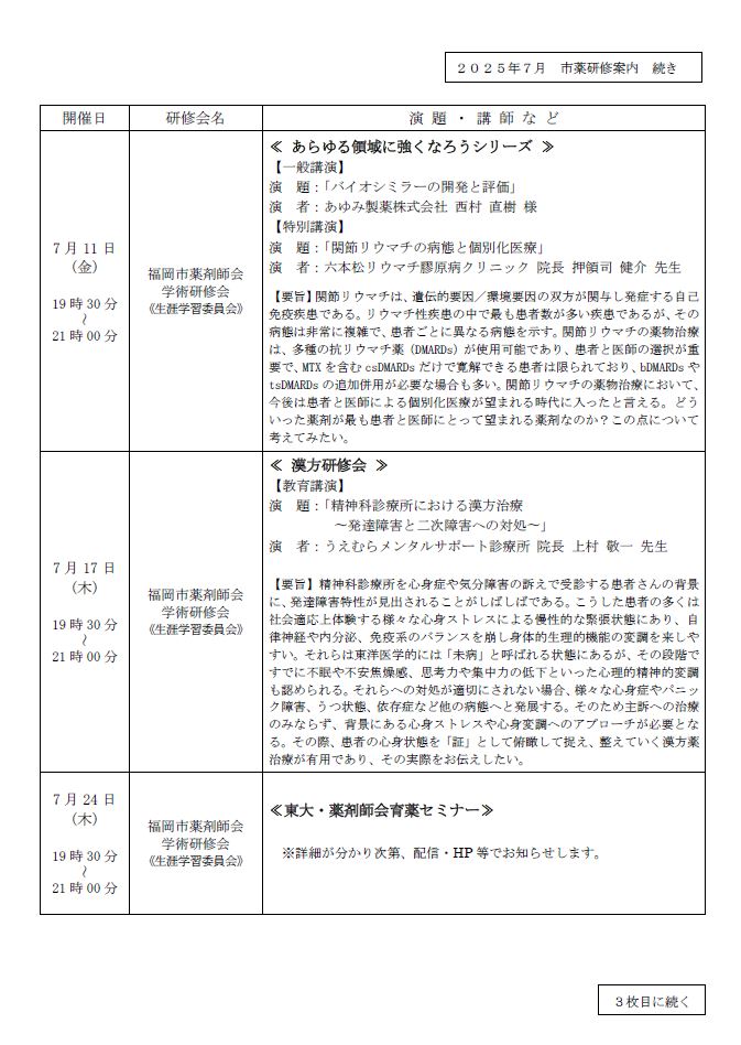 2025年7月の市薬研修案内について
