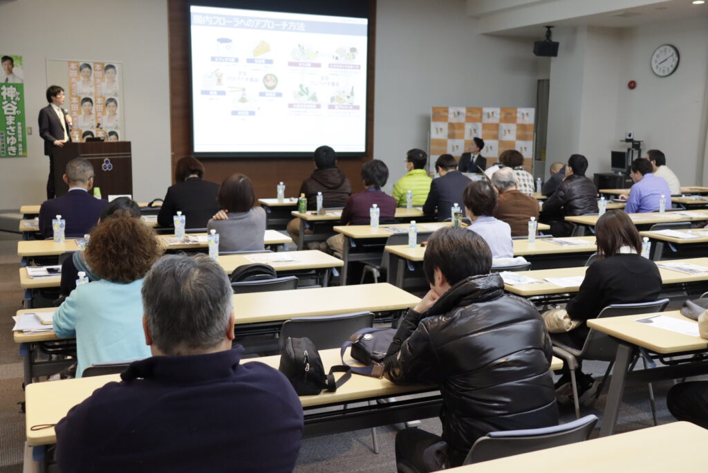 腸内フローラをよくすることで、免疫力があがり、さまざまな疾患の予防になると言われていますが、最近では、腸内細菌が脳機能に影響を及ぼすことも報告をされており、研修会では、腸内フローラの最新の情報を文献を交えてお話しいただきました。
