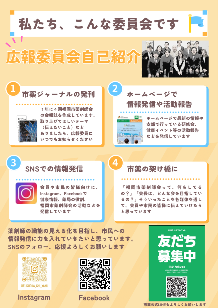 (多くの方に興味を持ってもらえるよう研修会の案内は、カラフルなデザインに。動画も作成し、SNS、市薬のサイネージでも宣伝しました)