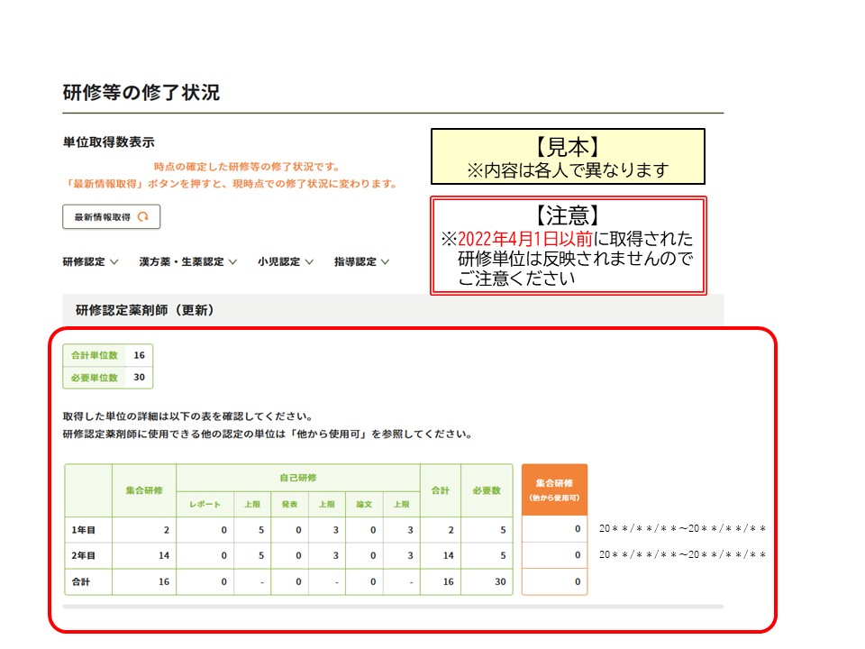 認定薬剤師をお持ちの方は、現在の認定期間等もご確認いただけます