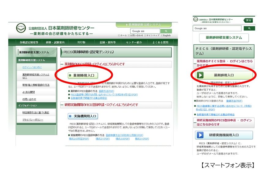 薬剤師研修・認定電子システム(PECS)へのログイン方法