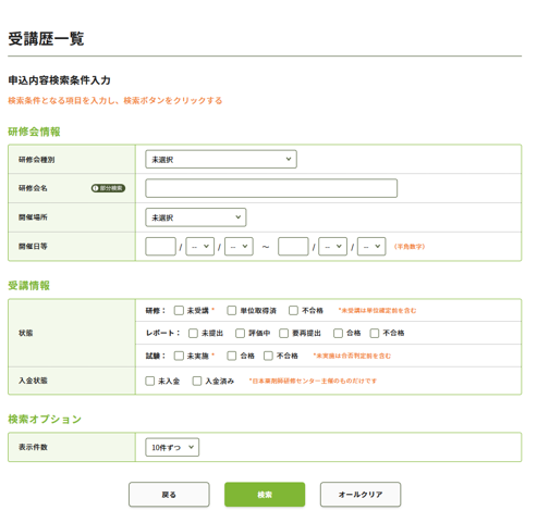 特に絞り込み条件がなければ、何もチェックを入れず「検索」をクリック