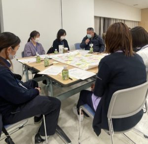 グループワーク形式で、多職種がそれぞれの専門性を活かし、問題点をみつけ何ができるのか意見を出し合いました。