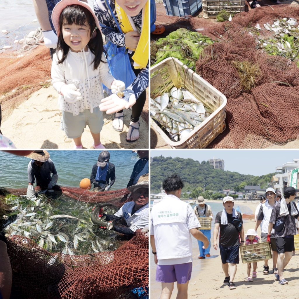 どんな魚が獲れているのか期待を胸に、掛け声に合わせて引いていきます。