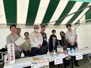 城南区薬剤師会では11名の薬剤師が参加。「アルコールパッチテスト」「美肌チェック」「お薬相談」を行いました。
